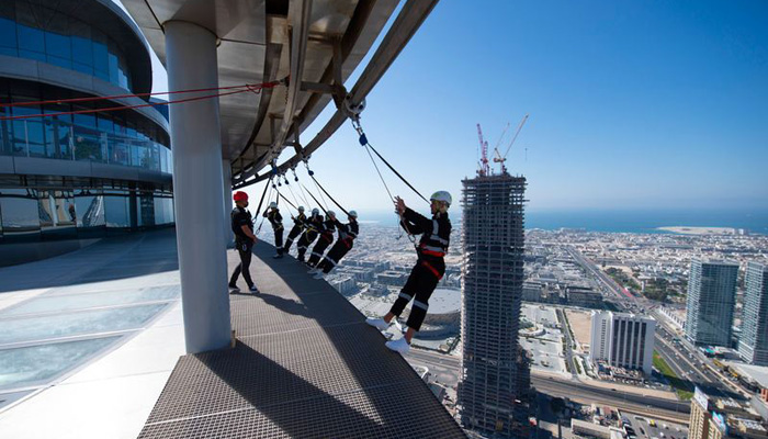 Step out onto the Sky Edge Walk that encircles The Address Sky View from the exterior and get a bird’s..